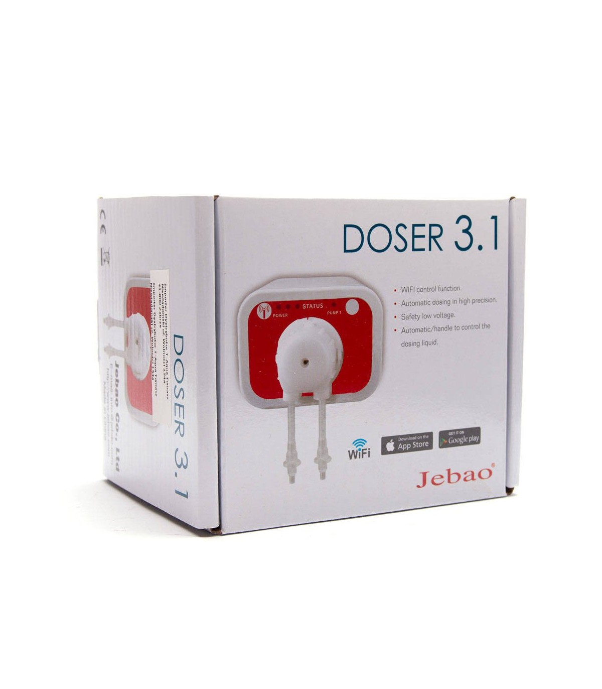 La dosificadora Jebao 3.1 es una bomba dosificadora asequible de 1 canal diseñada para controlarse con un dispositivo móvil. La Doser 3.1 tiene un color blanco y rojo, muy diferente a las bombas de dosificación anteriores de Jebao. Puede programar la bomba hasta 24 veces al día y dispensar una cantidad precisa de solución, lo que permite al usuario mantener sus parámetros del tanque estables, y elimina la necesidad de mezclar suplementos diariamente.