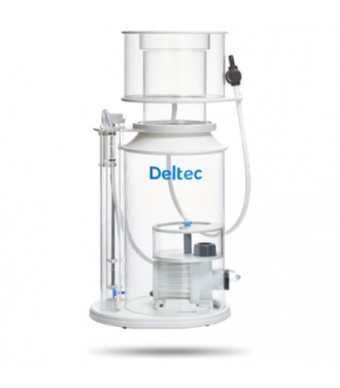 Los nuevos innovadores skimmers internos de Deltec «i» con la bomba DC Regulable, incorporan un nuevo sistema de emergencia de prevención de desborde de la copa de recolección, en la posible situación de que el nivel del agua del sumidero supere de forma repentina el nivel necesario para su funcionamiento o en el caso de que se bloquee la entrada de aire. Mientras sube el nivel del agua dentro del cuerpo del skimmer , el aire que se suministra a la bomba se apaga de forma automática para reducir la probabilidad de que no se sobreespume en la copa de deshecho.